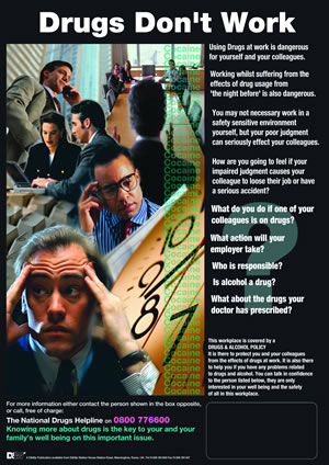 The posters are sealed in durable plastic for protection and long life. They have been designed for display in different workplaces, including offices, industry, police, schools and colleges. There are no limits on how and where to display them!